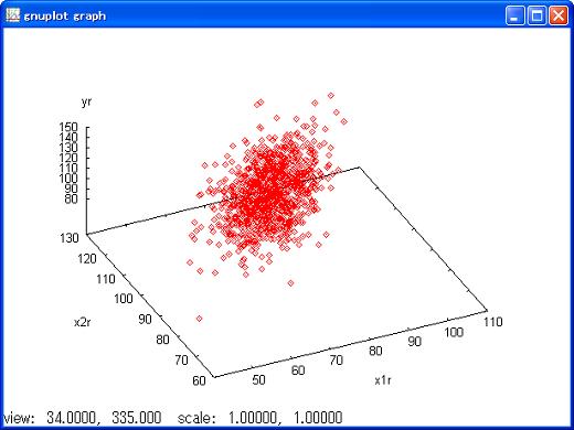 //View Genaration of normal distribution which may be same distoribution of school.csv. plot scat x1r x2r yr;