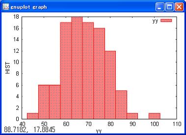 //View histgram by 100 records. plot hist yy;