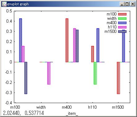 //Plot conditional independence between track race. get freq@ana; plot bar m100 width m400 h110 m1500 by _item_;