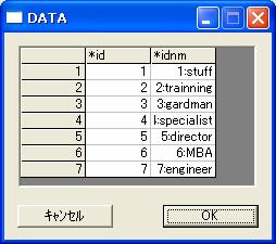 //Example 2 make format file by hand command. //Since id is integer code, put '*' to from of variable name 'id'. hand *id idnm/ 1 1:stuff 2 2:trainning 3 3:gardman 4 4:specialist 5 5:director 6 6:MBA 7 7:engineer ; put jobcat_;
