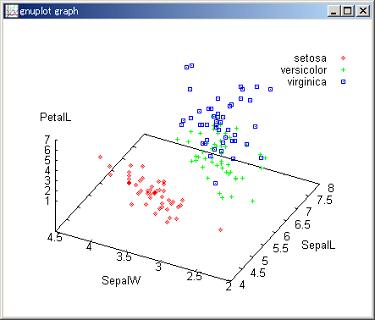 //Execute 3D data by 3 segment kmeans SepalL SepalW PetalL PetalW by 3; //View output of kmeans; get freq@ana; //Variable seg is segment number. so this is instructed by option 'code'; plot scat SepalL SepalW PetalL by seg/ seg:code ;