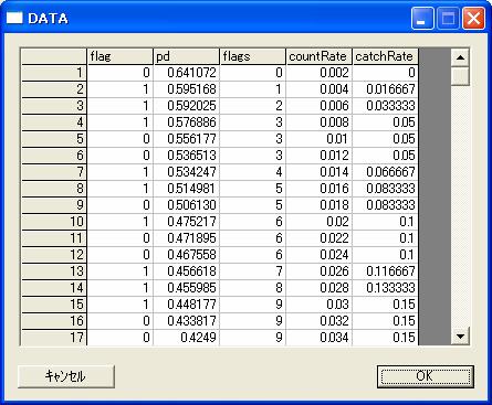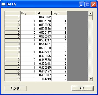 // //maximum number of records resavation variable // //this variable is used to maximum number of records. //Example1 draw effient curve by LAST variable. //Read DM ancate data which has react flag 'good' or 'no'. get dmdat500R.csv@; //Digitizing recall flag for logit regression. if(def == "good") { flag=1; } else { flag=0; } //Execute logit regression. logit flag by income dm1-5 area amount old homespan workspan; //Get flag and pd from logit output and sort descending pd. get freq@ana; select flag pd; sort -pd;