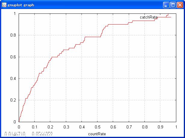 //Plot efficent curve. plot line catchRate by countRate;