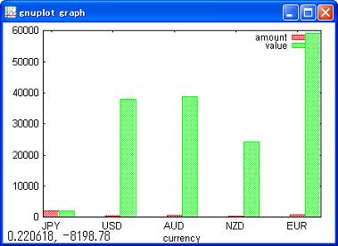 //View amount and value of each currency. plot bar amount value by currency;