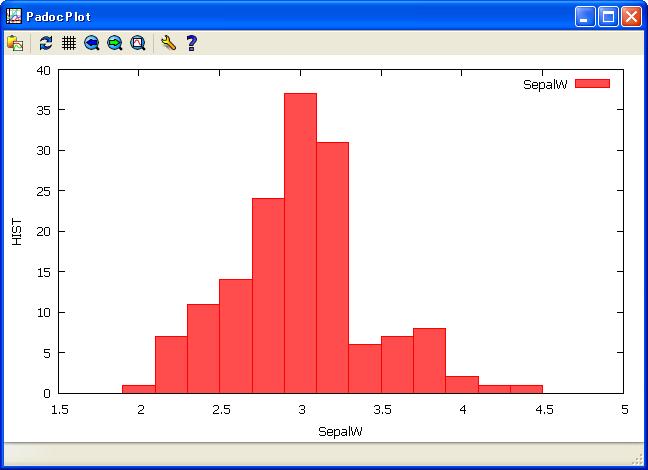 // //Histgram command // //This command draws histgram. // //Remark:There are three display in the histgram //1. Histgram of one variable //2. Histgram of multiple variables //3. Histgram by category // //1.Syntax one valwithout category variable. plot hist [variable]; //2. Systax multiple variables plot hist [variable1 variable2 ...] //3.Syntax with category variable. hist [variable] by [category variable]; //Option title=title //title strings xlabel=x //x axis strings ylabel=y //y axis strings zlabel=z //z axis strings xpitch=xp //xtics pitch span ypitch=yp //ytics pitch span xrotate=90 //vertical x tics //Exampe l 1 Single histgram get irisR.csv@;