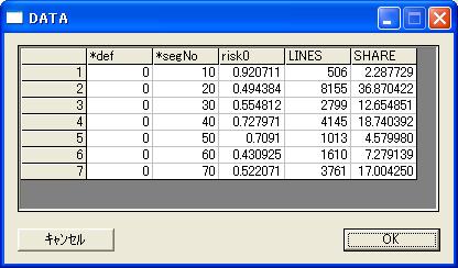 //Execute mean of risk by each segNo. sumup risk by def segNo/ method:average ;