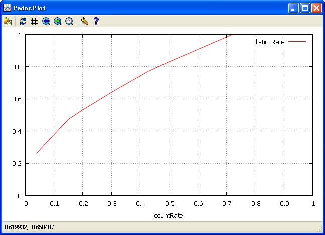 //View paraite result figure. get ans1; plot line distincRate by countRate/ yrange=[0:] ;