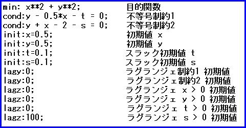 最適化する関数と不等制約を式で与えます