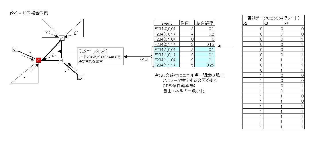 ハイパーエッジ内の確率は各頂点の事前確率の結合確率となります。