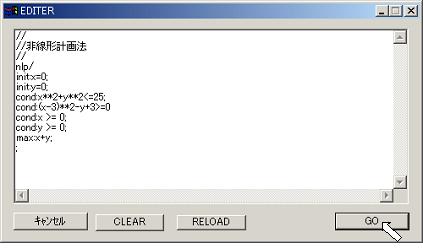 コマンドモードで条件式と目的関数を記述