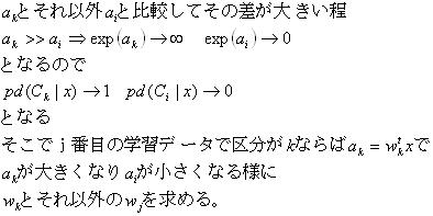 例えば菖蒲の3種類を花弁の長さと幅、ガク片の長さと幅の4つの値で区別する場合 多クラスロジット回帰モデルでは以下の様に3種類の確率を計算します。 |